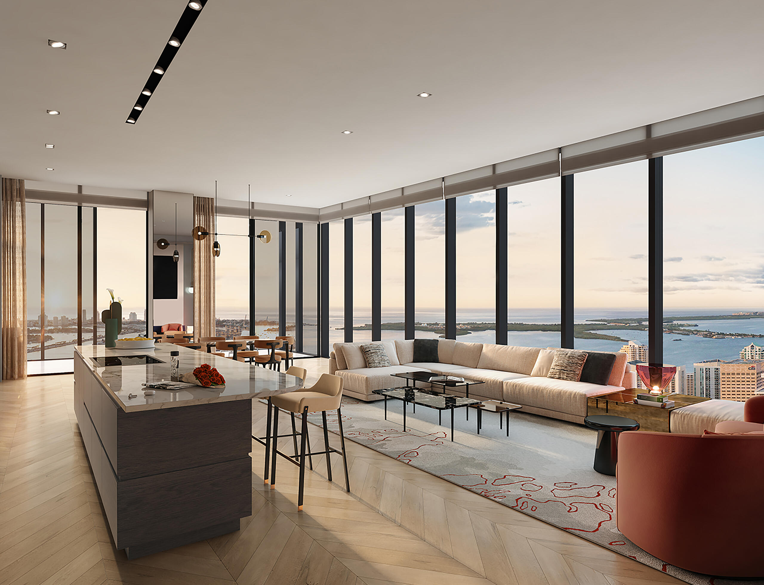 La proximidad al Miami Worldcenter permite disfrutar de todas sus comodidades y dinamismo, mientras que la torre ofrece un ambiente más exclusivo y tranquilo con vistas despejadas de la bahía Biscayne, el horizonte de Miami y más allá.